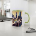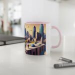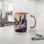 Ajoutez de la personnalité à votre tasse de café avec ce décor urbain moderne.