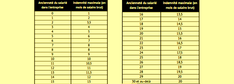 Le montant de ces indemnités (dommages-intérêts) est limité par un barème d’indemnisation dit « barème Macron« . Découvrez dans ce tableau quel est le montant des indemnités pour licenciement abusif selon ce barème.